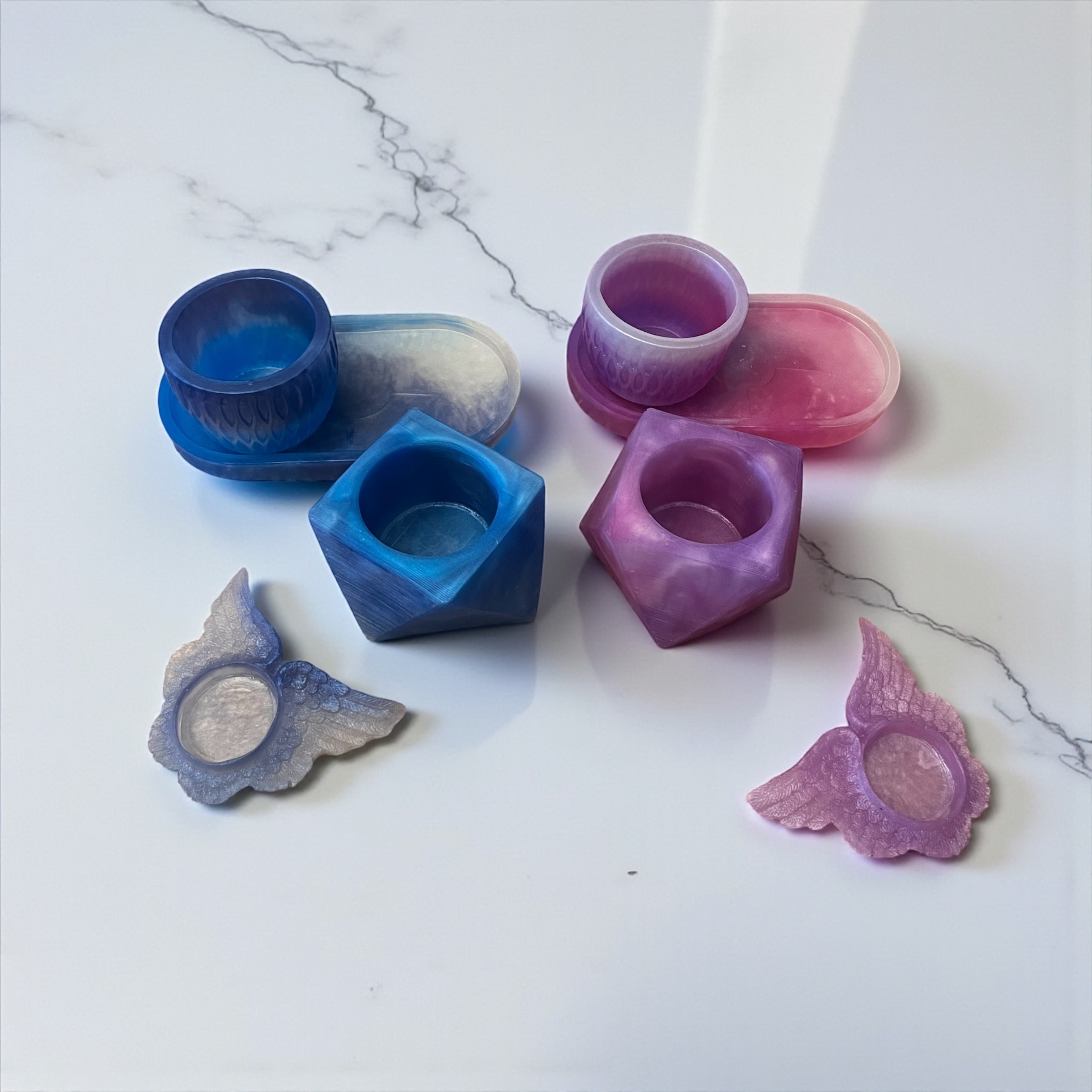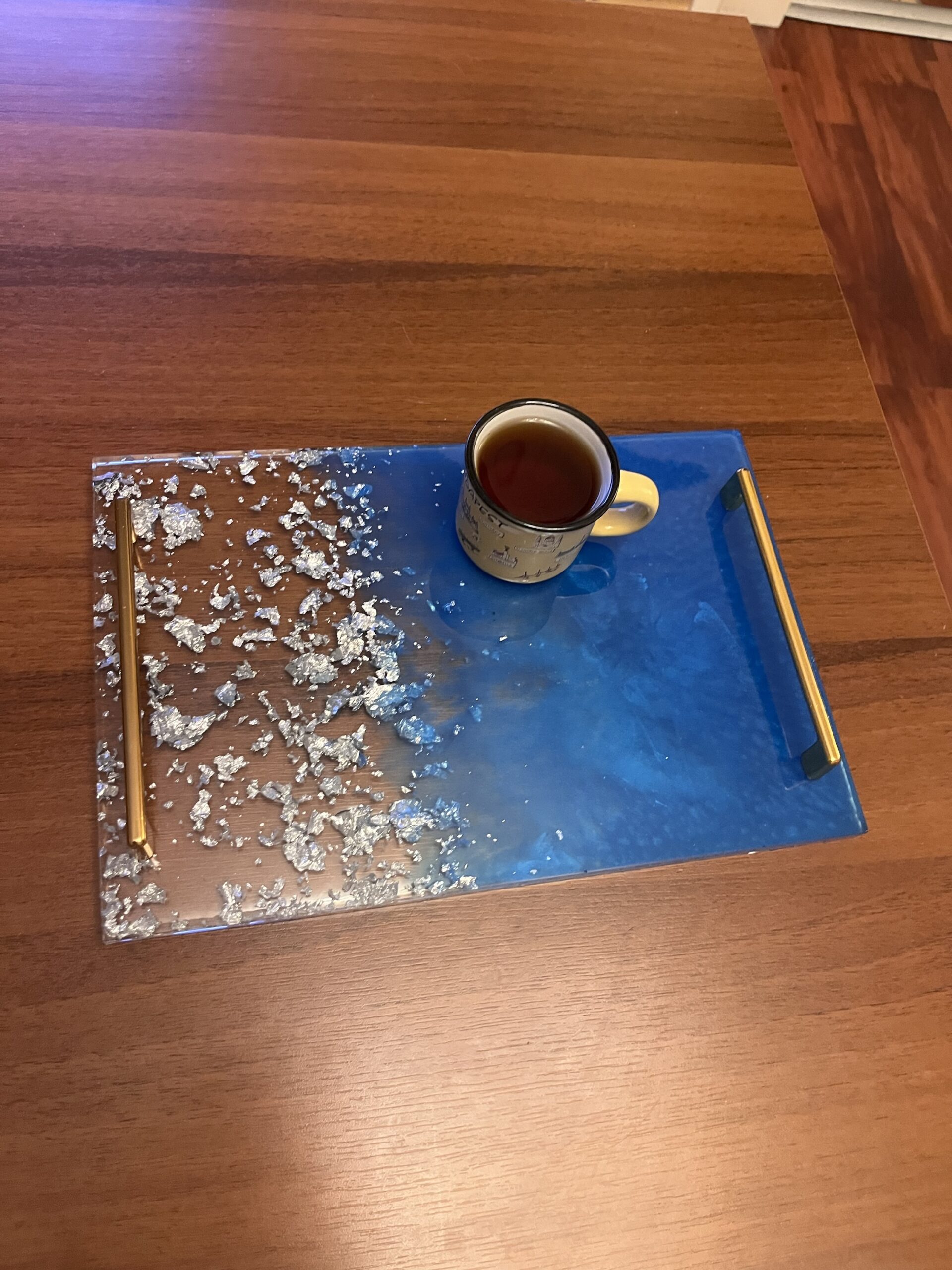 Altın/Gümüş Varak Detaylı El Yapımı Epoksi Sunum Tepsisi – 4 Renk Seçeneği