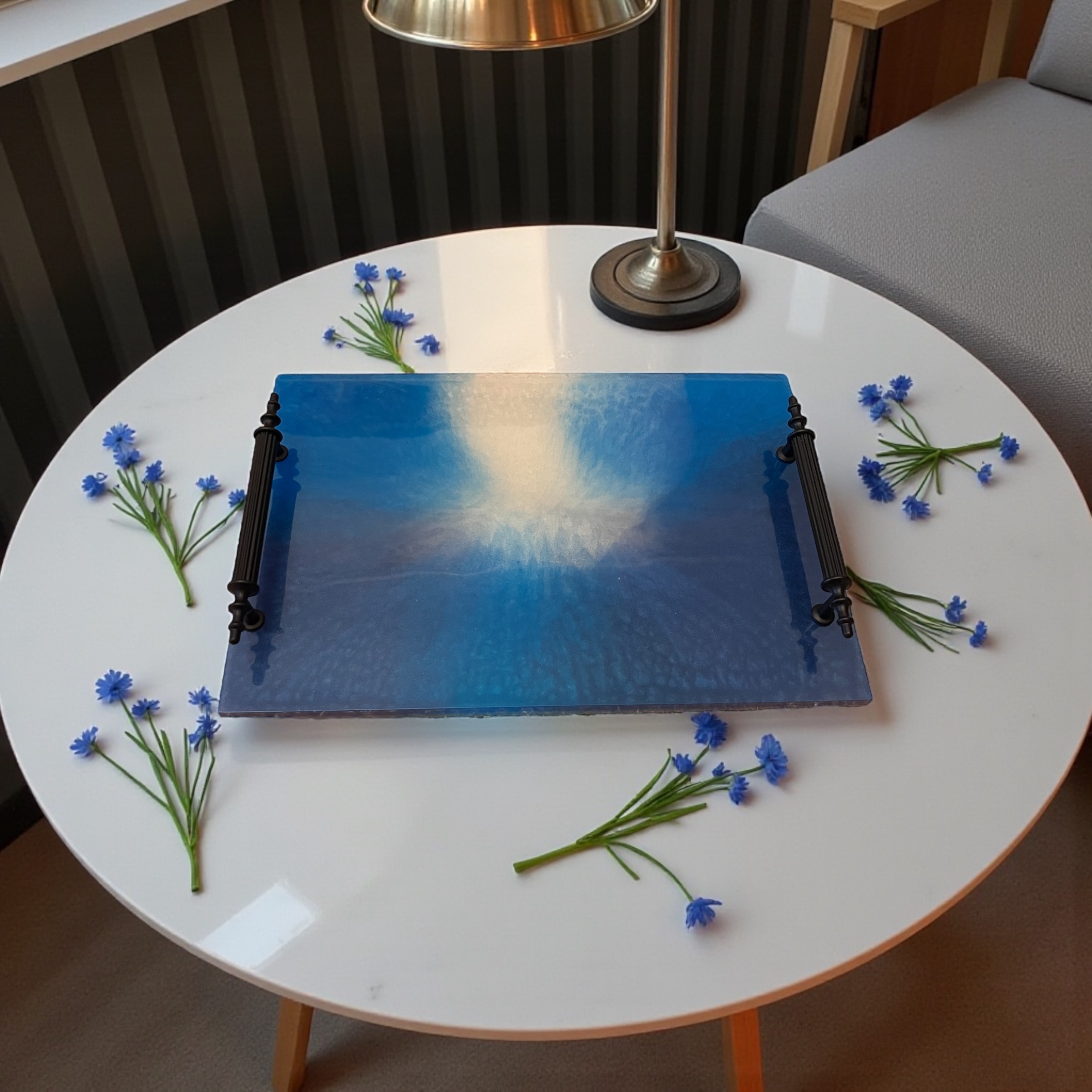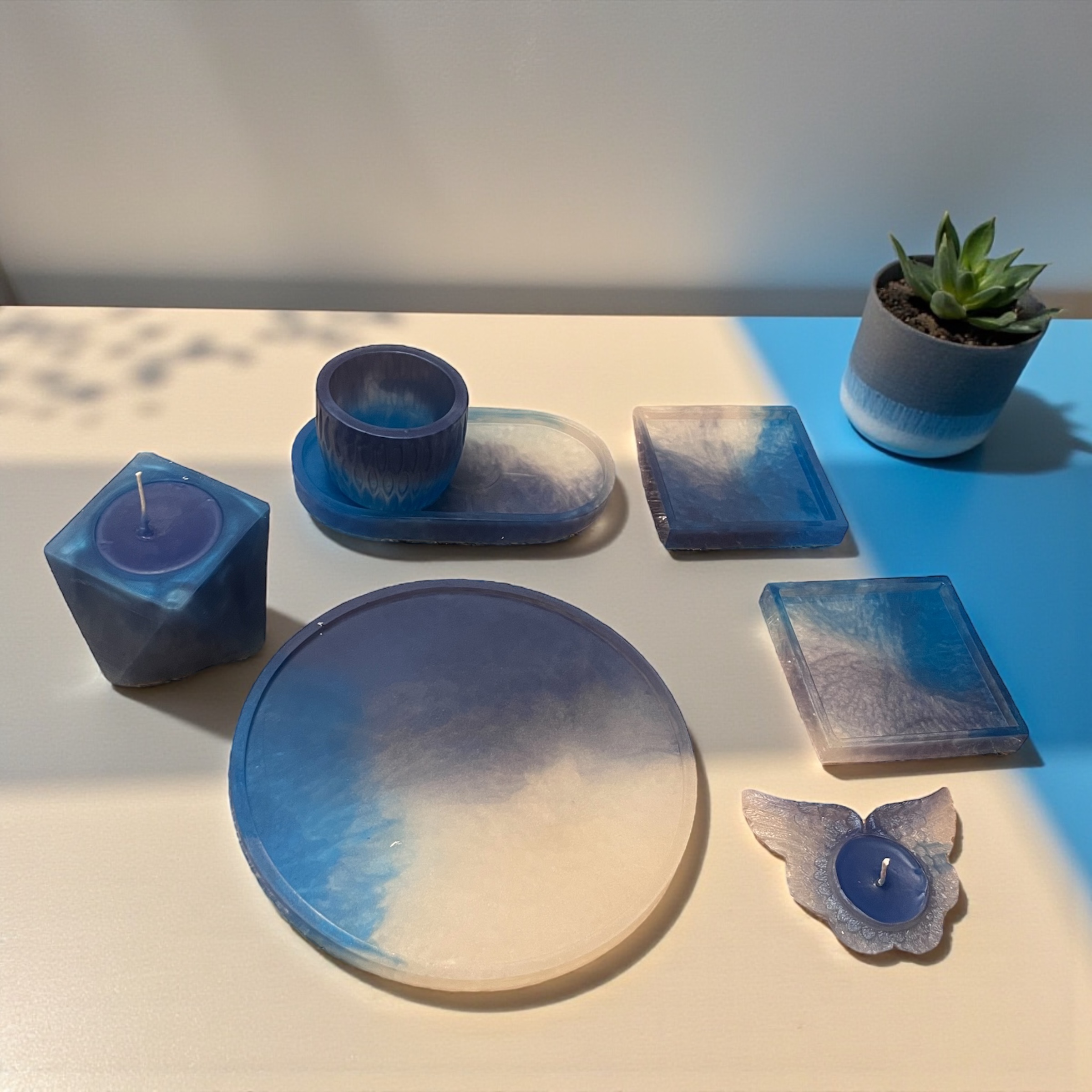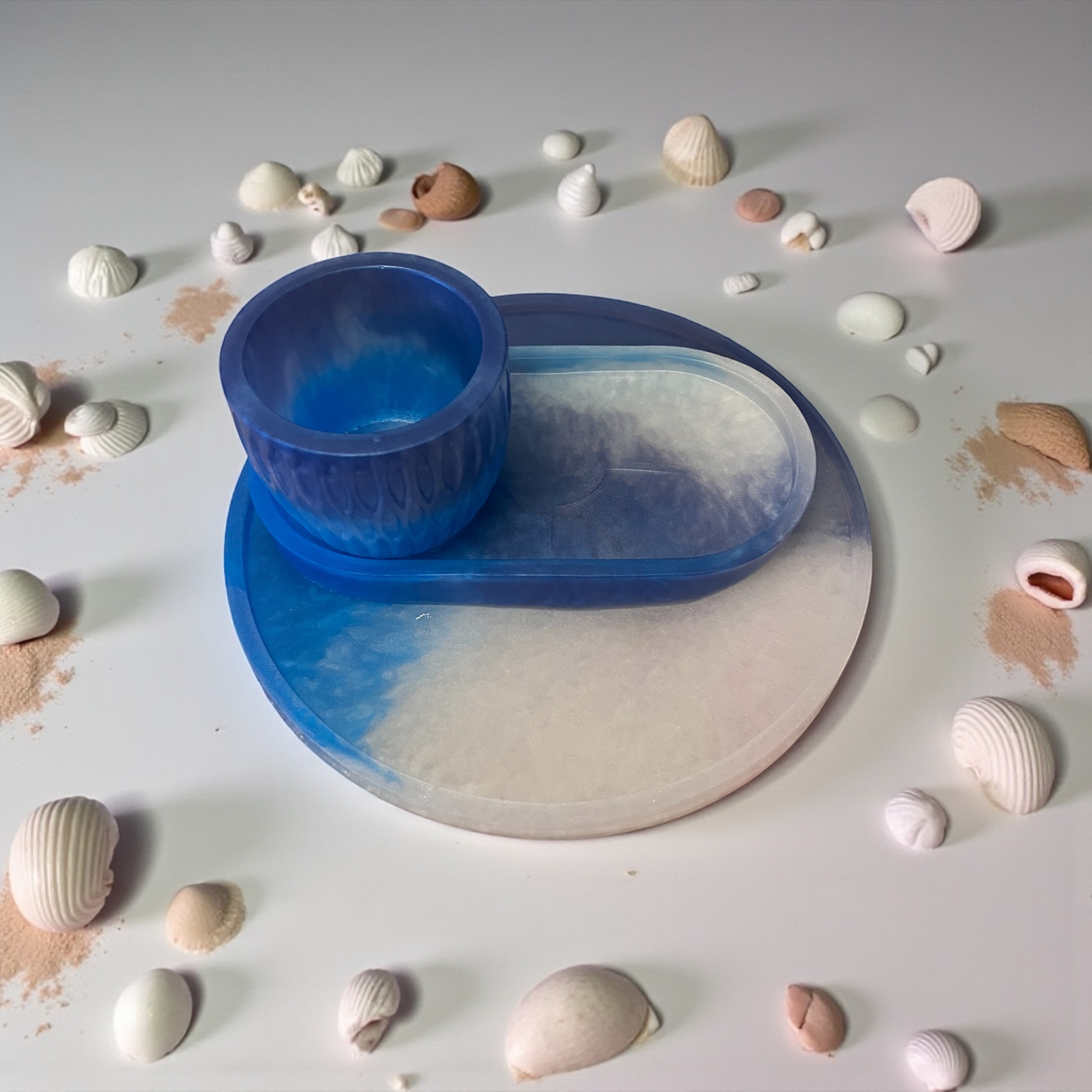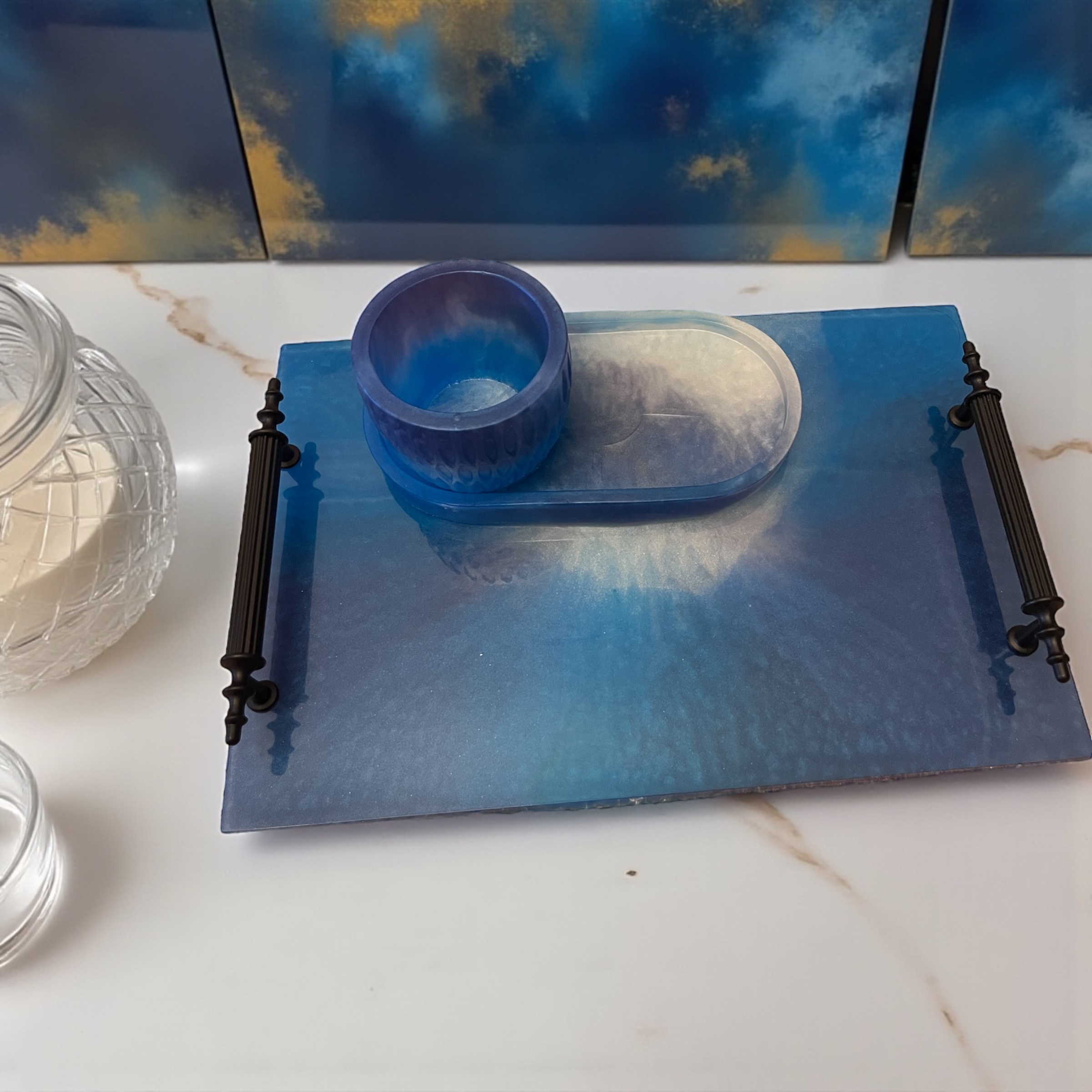 El Yapımı Epoksi Reçine Dekor Seti, El Yapımı Epoksi Reçine Dekor Seti | Servis Tepsisi, Mumluk ve Bardak Altlığı