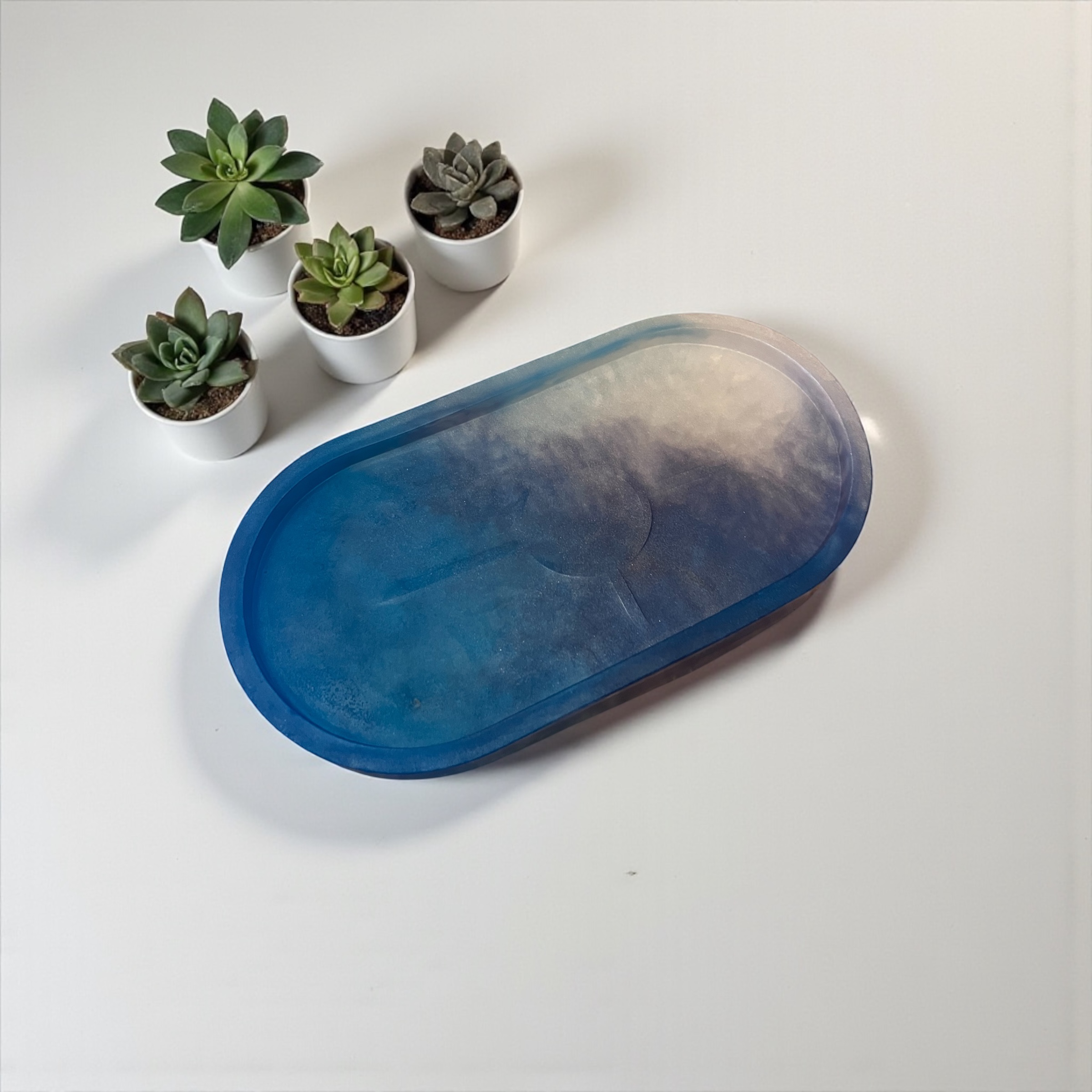 Etiler Home Gökyüzü Mavisi & Lavanta Dream El Yapımı Epoksi Reçine Dekor Seti, doğal renk geçişleriyle hazırlanmış özel bir tasarımdır. Her parça, üç farklı epoksi renginin özenle karıştırılmasıyla oluşturulan mermerimsi bulut desenli bir yüzeye sahiptir.
