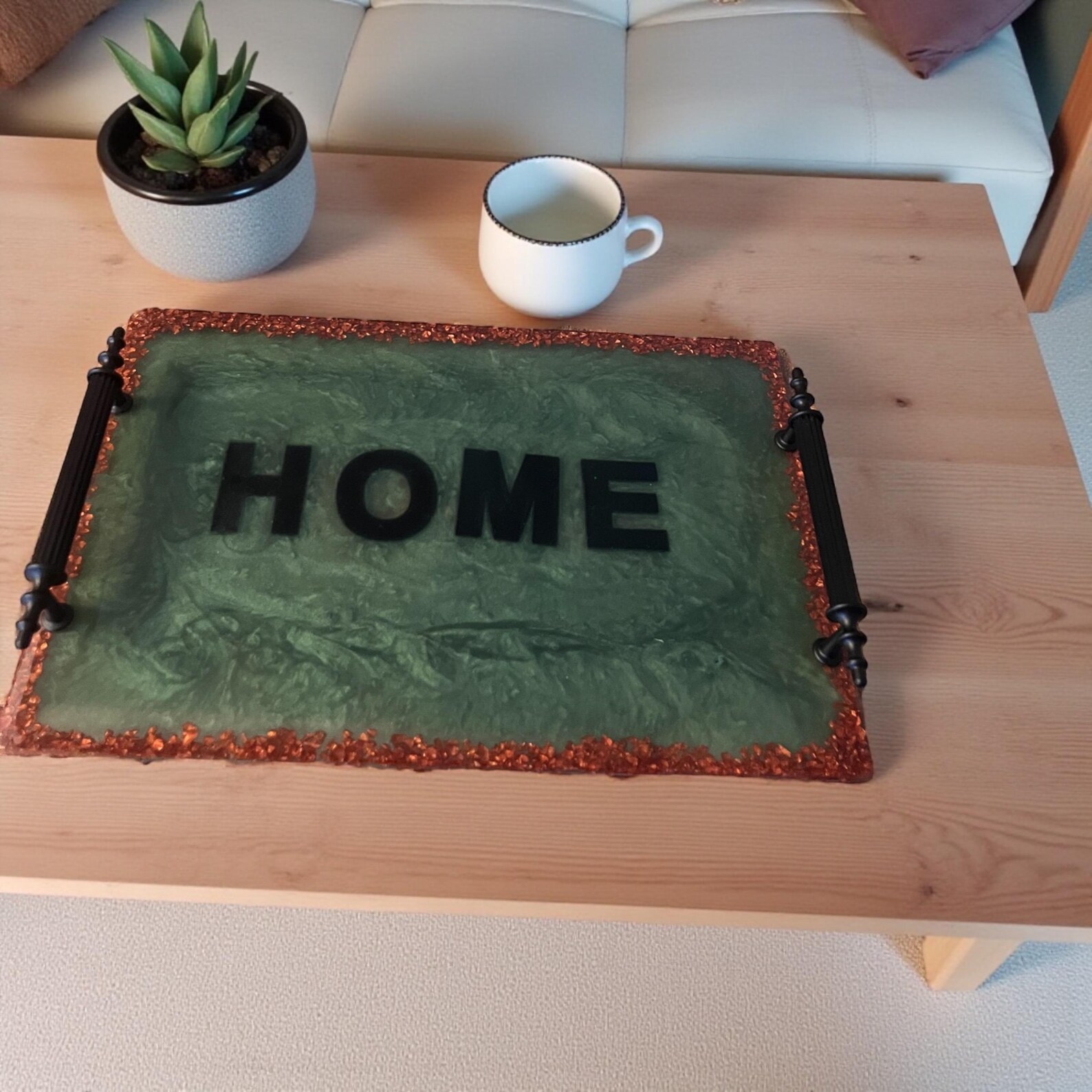 “HOME” Yazılı Yeşil Epoksi Sunum Tepsisi